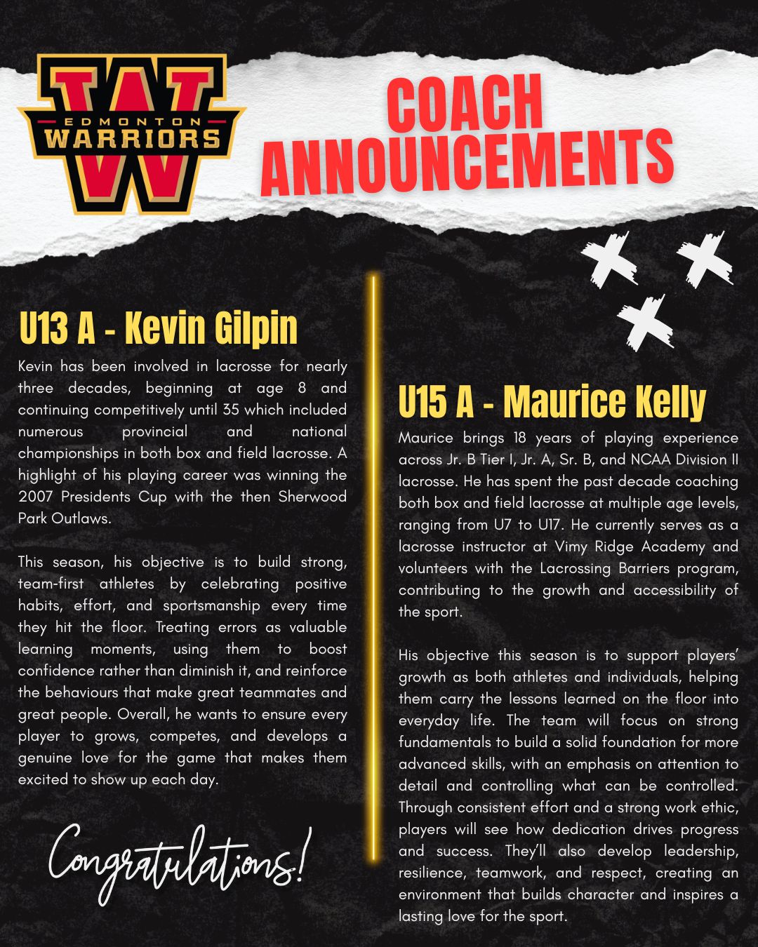 Both coaches return to the game with a shared purpose: to give back to the sport that shaped them. Their coaching is rooted in gratitude for the opportunities lacrosse opened in their own youth, and in a genuine desire to help today’s athletes grow, thrive, and discover the same joy that fueled their journeys.